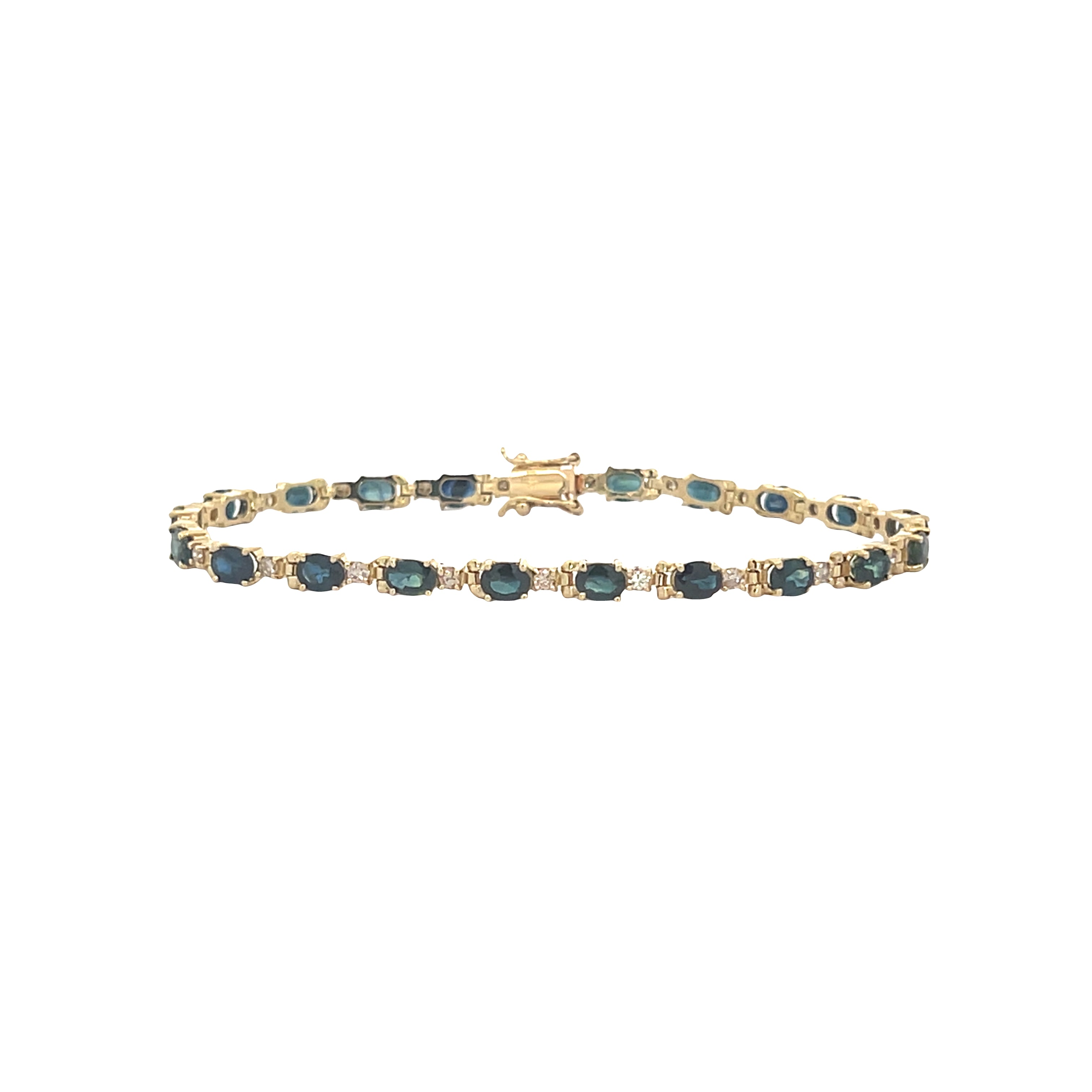 14K Yellow Gold Blue Sapphire and Diamond Bracelet