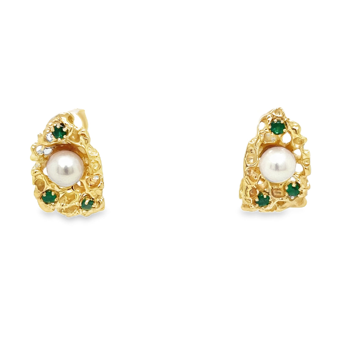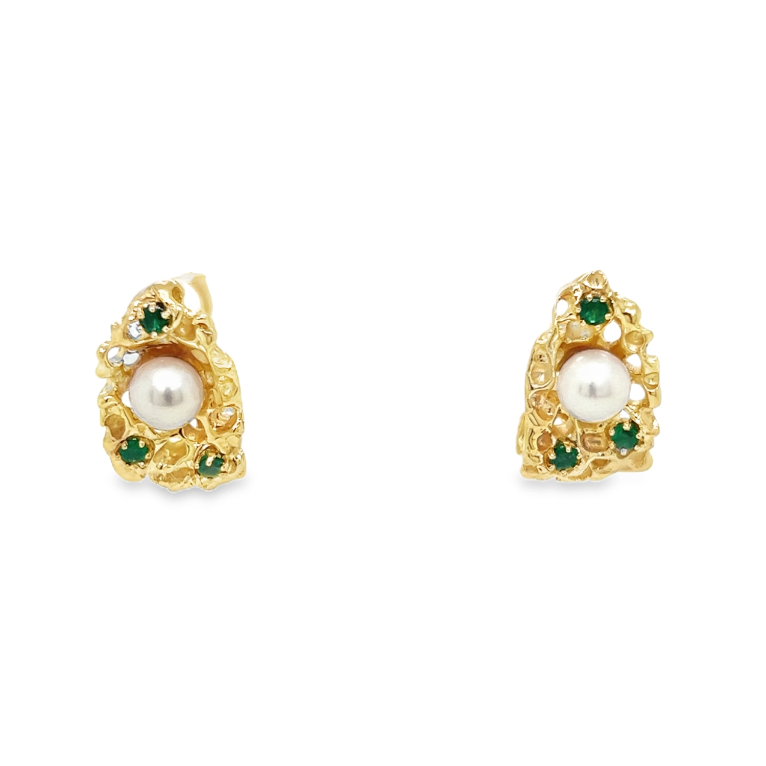 Indulge in elegance with these exquisite 14K yellow gold earrings featuring cultured Akoya pearls and emeralds. These earrings are not just jewelry; they're wearable art that reflects both natural beauty and skilled craftsmanship. Whether you're a pearl enthusiast, a lover of unique jewelry designs, or searching for a memorable gift, these earrings offer a distinctive and luxurious choice.Details