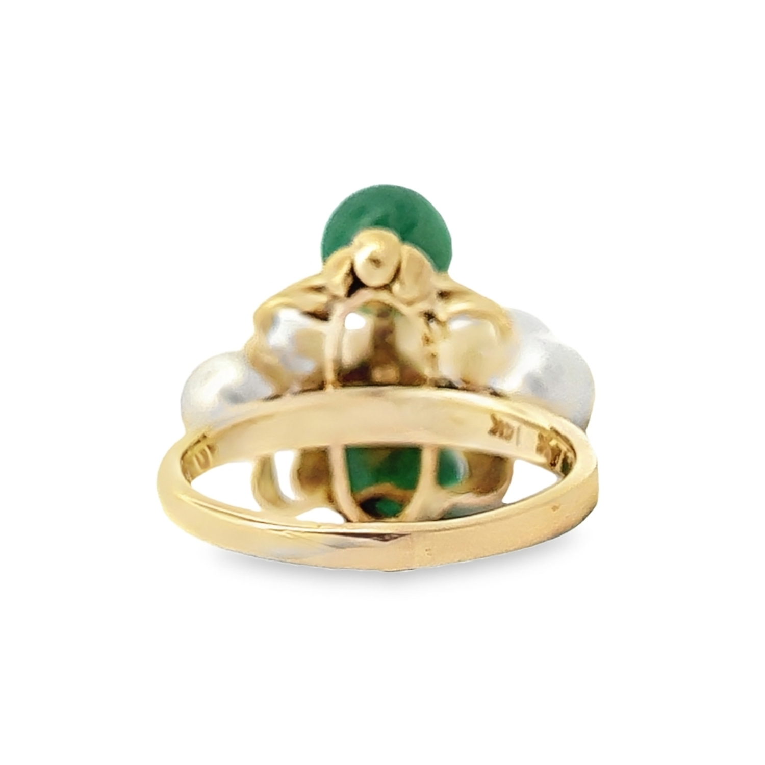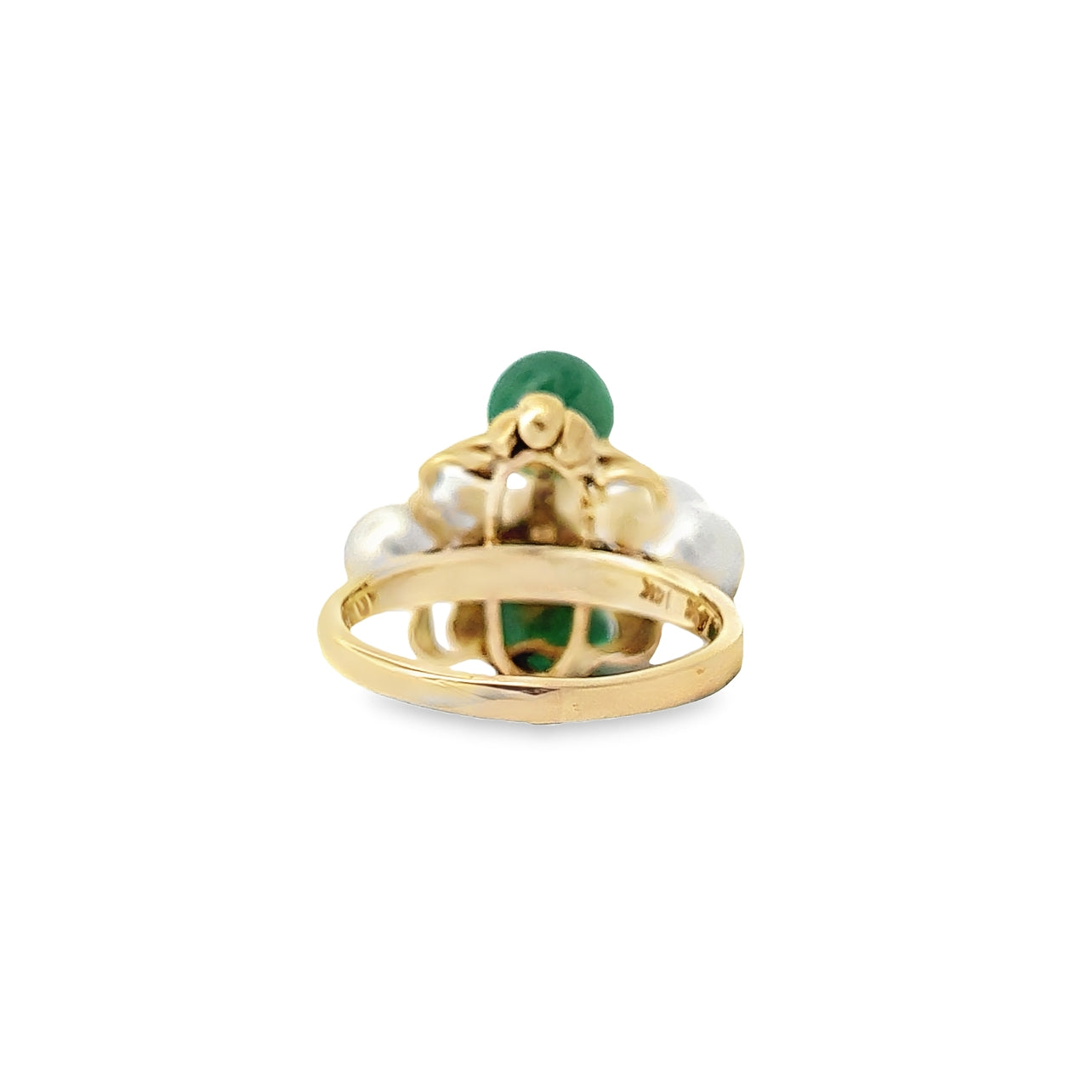 14K Yellow Gold Cultured Akoya Pearl and Jadeite Fashion Ring