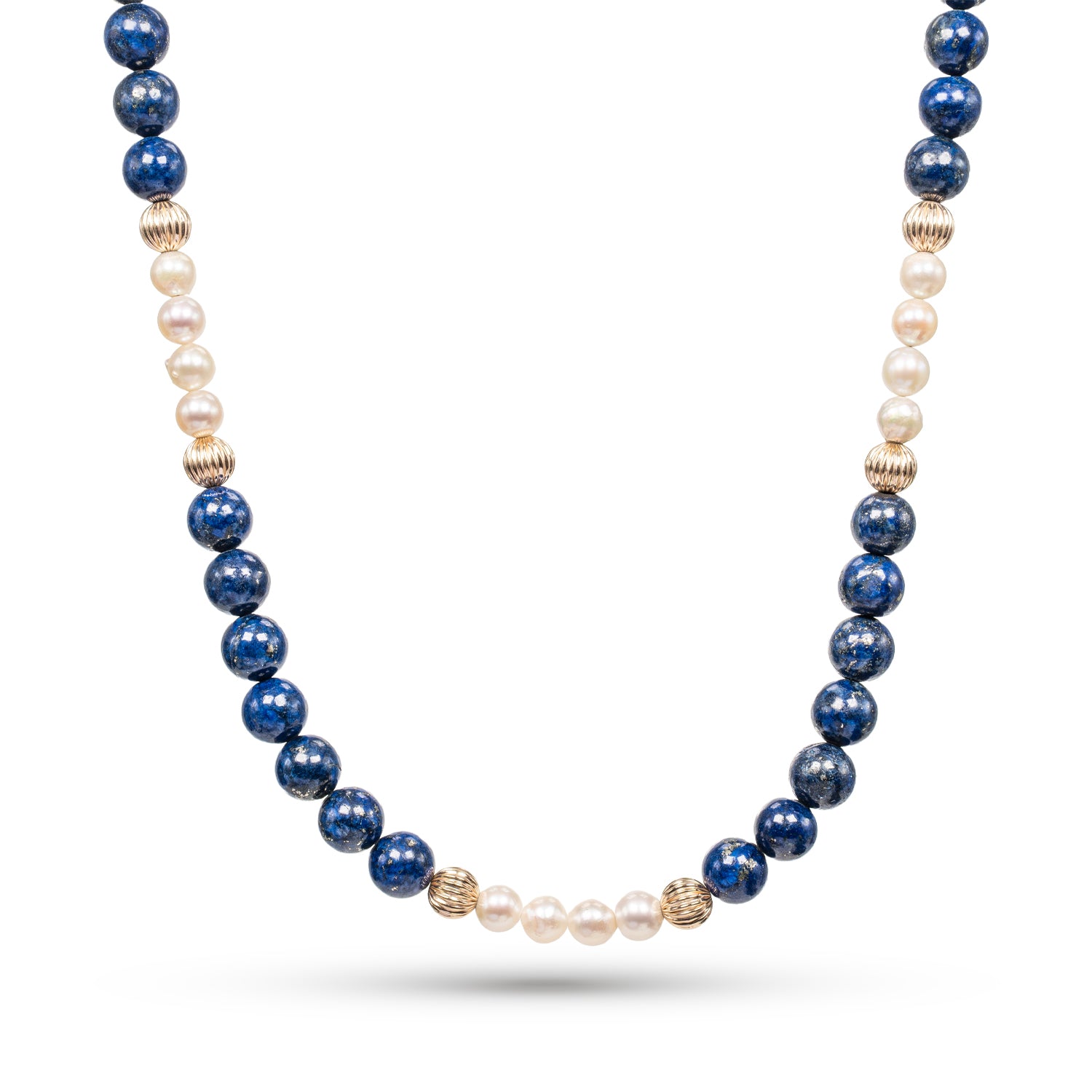 14K Yellow Gold Lapis Lazuli and Cultured Freshwater Necklace Strand