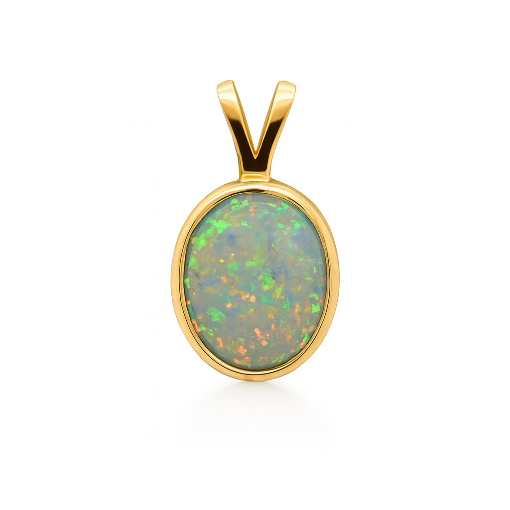 14K Yellow Gold Solitaire Black Base Opal Pendant