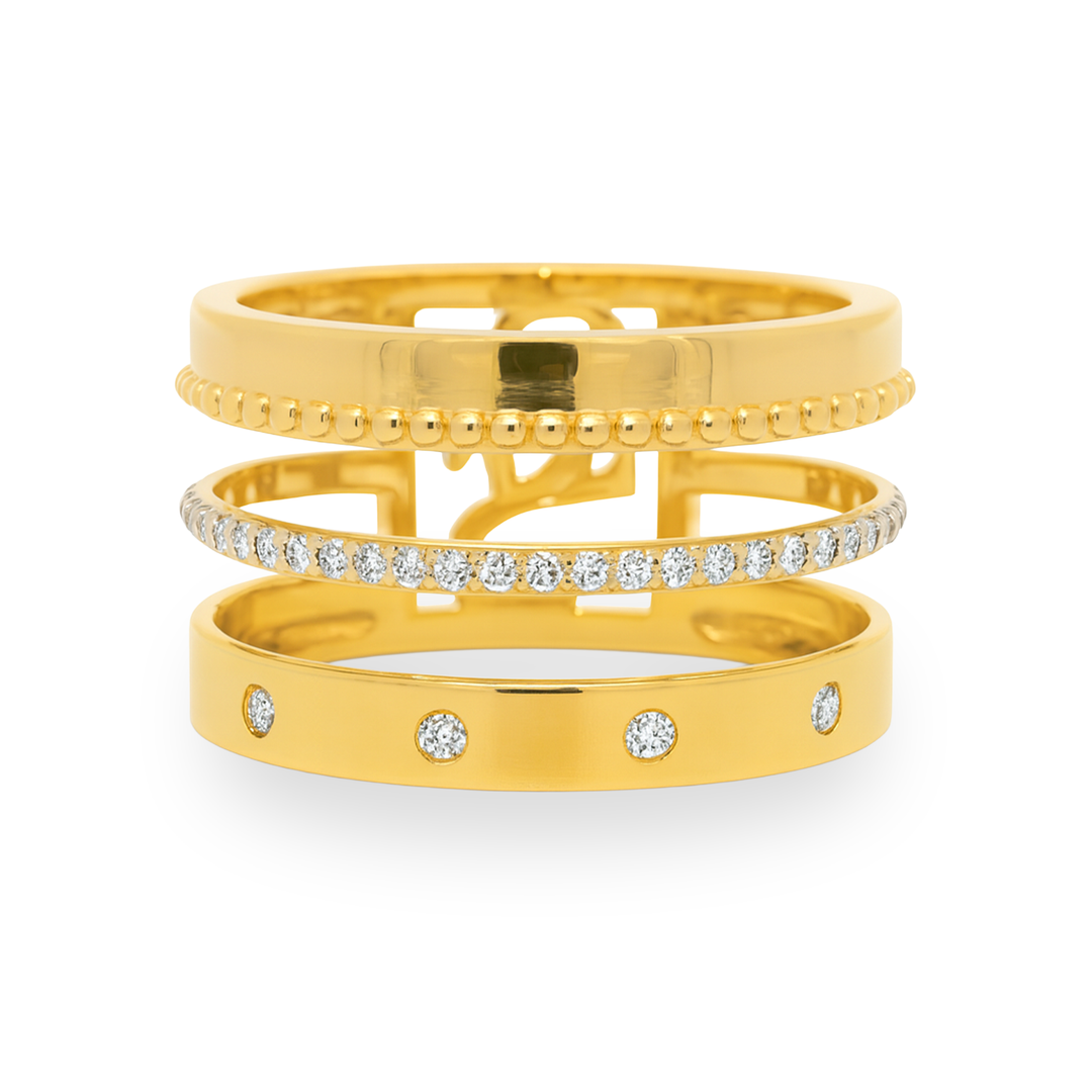 14K Yellow Gold Three Row Stackable Style Diamond Fashion Ring