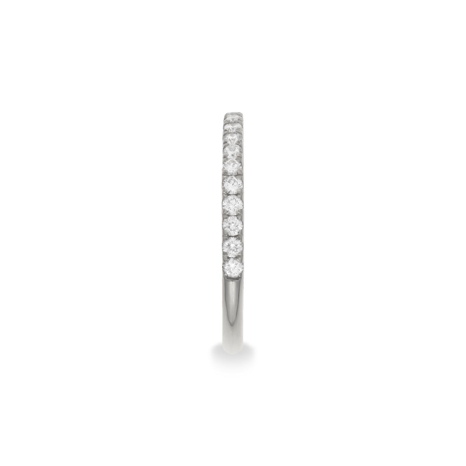 18 karat white gold Bensel Made French v-split style wedding band set with 20 round brilliant cut diamonds at 0.40 carat total weight with F+ color and VS1 - VS2 clarity.Details