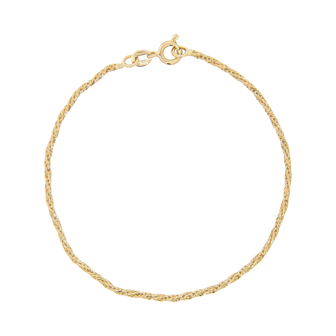 18K Yellow Gold 1.8 mm Twisted Diamond Cut Wheat Chain Bracelet