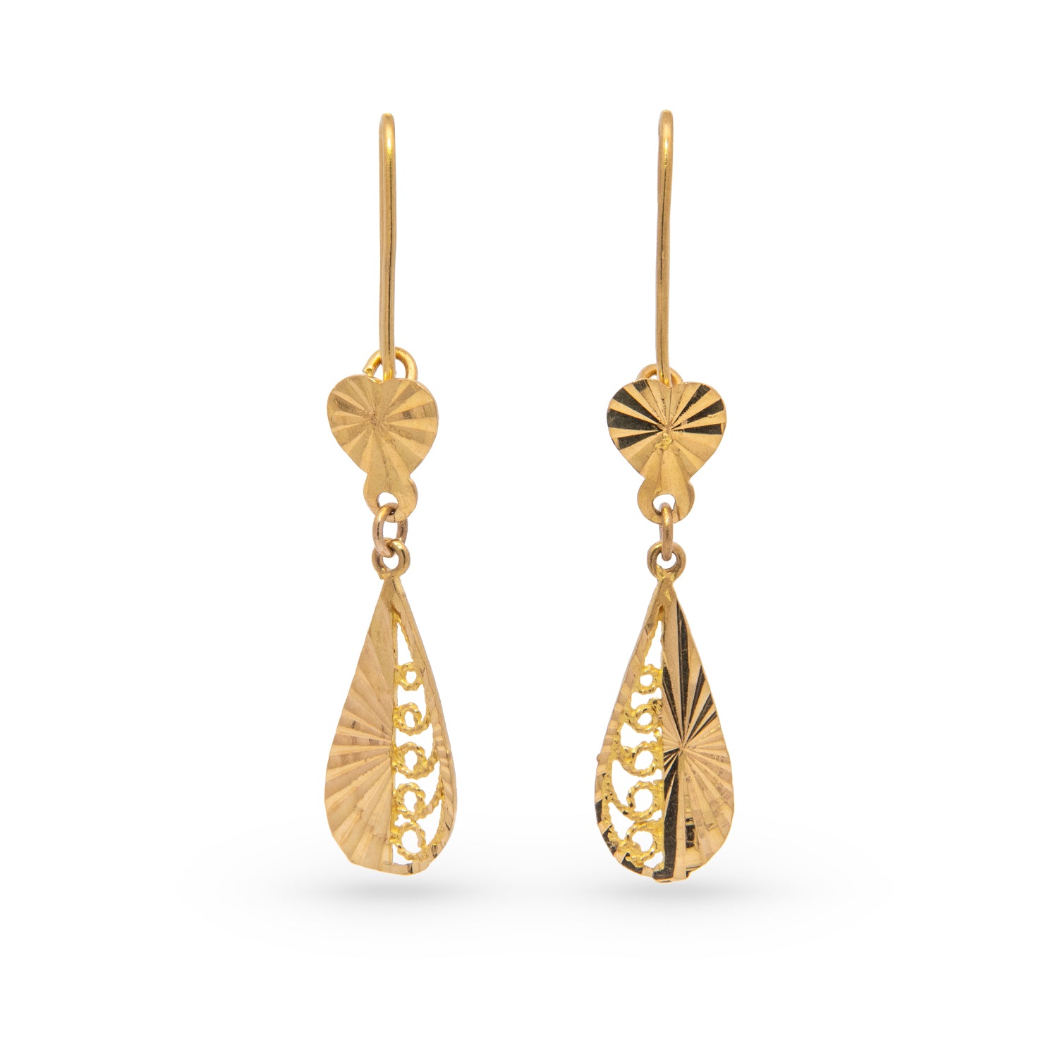 22K Yellow Gold Estate Diamond Cut Finish Dangle Earrings