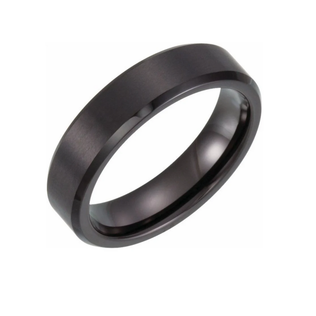 Black PVD Tungsten 6 mm Beveled Edge Band