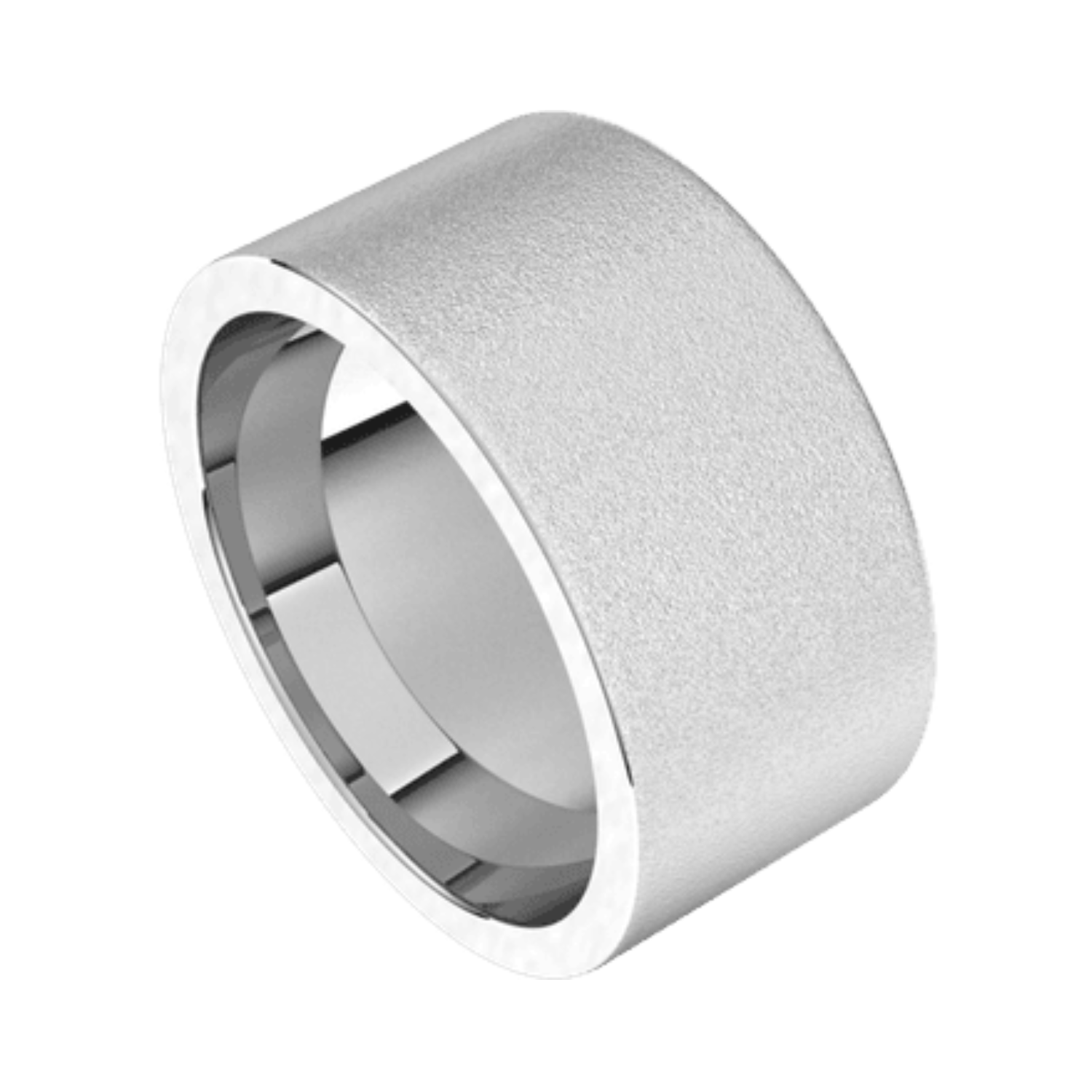 This sterling silver band features a wide flat design with a German textured wheel finish for a subtle, refined look. The comfort fit interior ensures comfortable wearability, making it both stylish and practical.Details