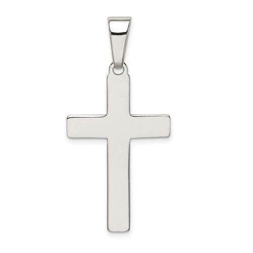 This elegantly crafted pendant shines in gleaming sterling silver, capturing the timeless essence of the iconic cross symbol. With its smooth polished finish, the piece radiates with simplicity and sophistication, making it a versatile choice for daily wear or special occasions. A modern take on a classic design, this pendant is a testament to both faith and fashion.Details