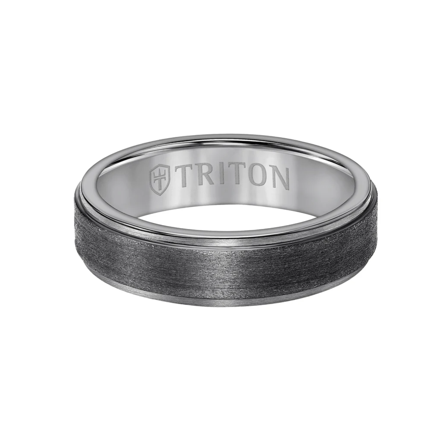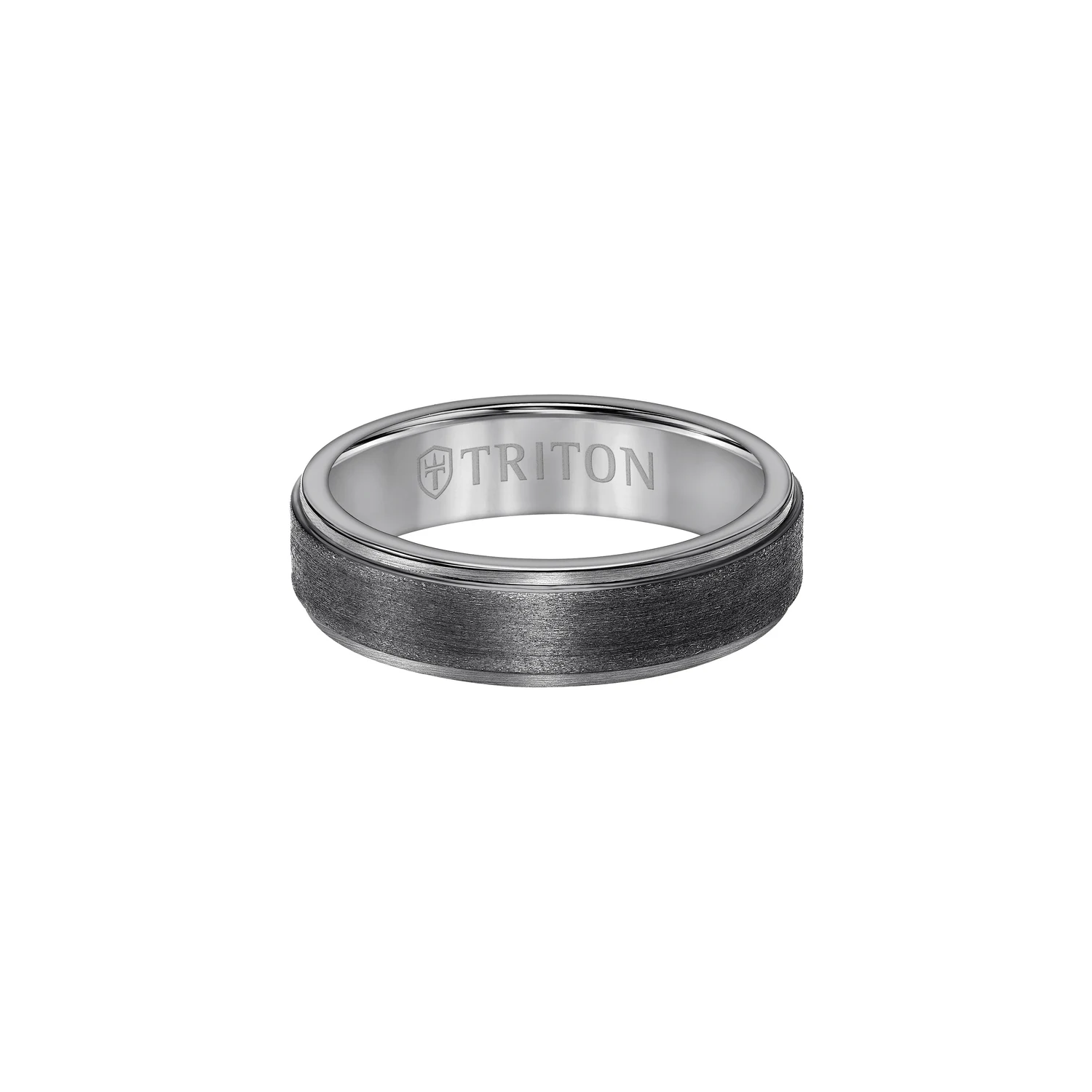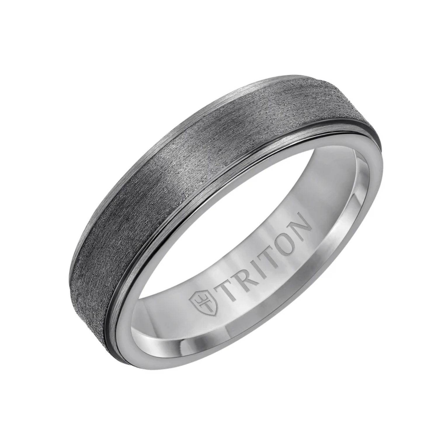 Experience timeless sophistication with this 6 mm tantalum step edge wedding band. With its satin finish, the band boasts a soft sheen that highlights the tantalum's distinct hue. The stepped edge adds a modern twist to its classic design. This contemporary wedding band embodies both elegance and durability for lifelong wear.Details