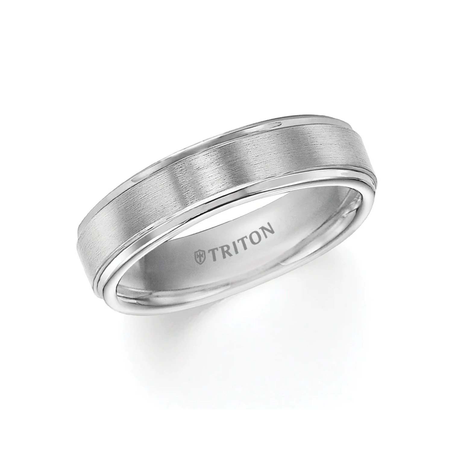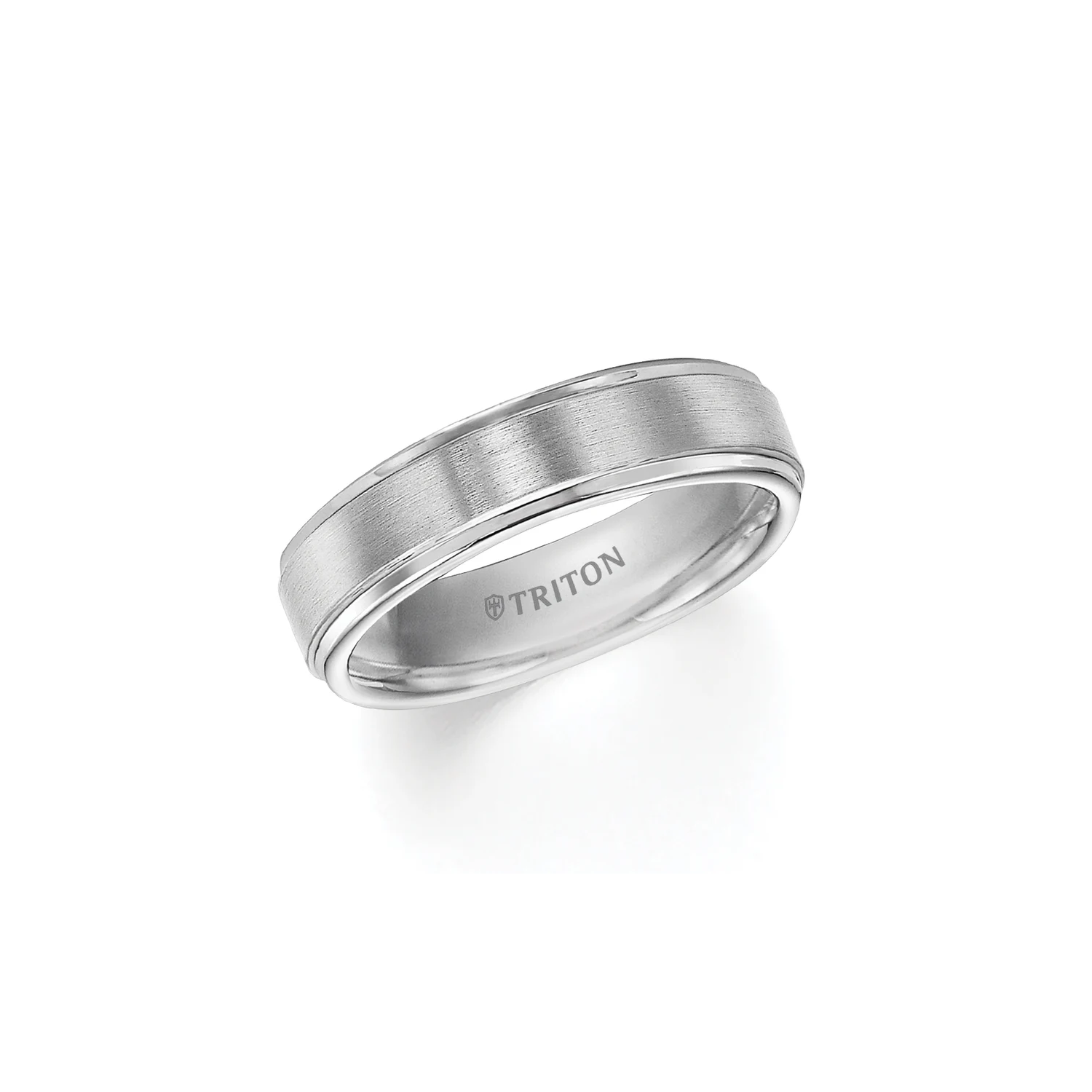 WhiteTungsten 6 mm Step Edge Wedding Band with a Satin Finish